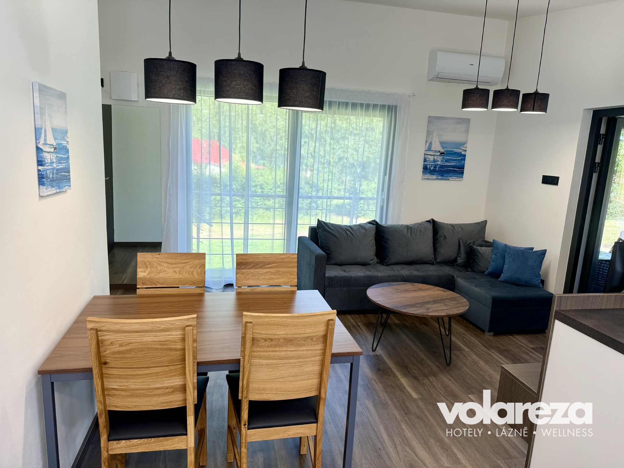 Chata je připravena nabídnout pohodlné a komfortní ubytování během celého roku – ideální pro rodiny, páry i menší skupiny. Těšit se můžete na dvě ložnice, moderní sociální zařízení, plně vybavenou kuchyňku, podlahové vytápění a prosklenou pergolu s výhledem do přírody.