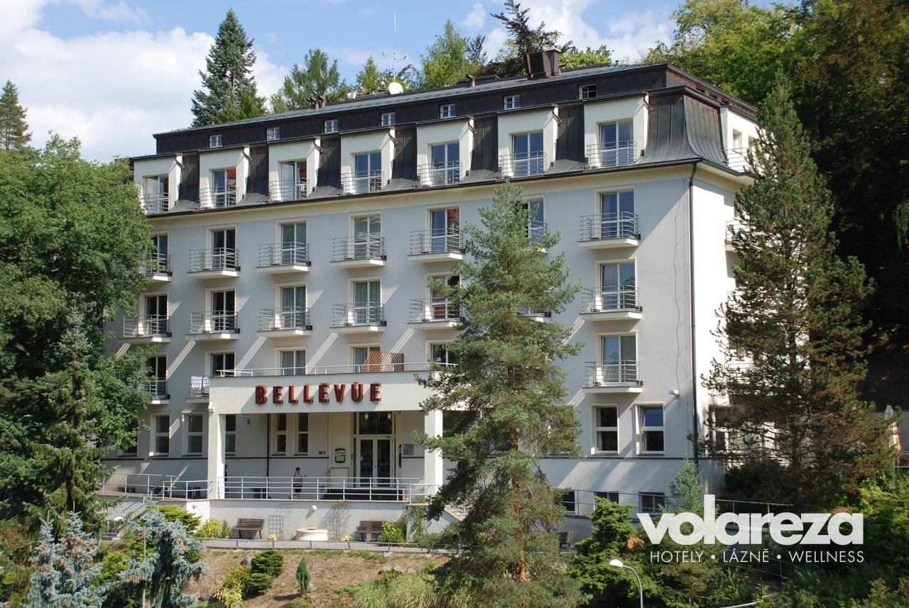 Hotel je od lázeňského centra Karlových Varů vzdálen cca 20 minut pěší chůze. Můžete také využít autobusového spojení, zastávka busu je přímo u hotelu. Pobytem v hotelu Bellevue se Vám nabízí ojedinělá možnost navštívit světoznámé lázně v každém ročním období. Lázeňské město Karlovy Vary a blízké okolí nabízí pro Vaši návštěvu množství zajímavých akcí a služeb. V hotelu je vlastní wellness centrum s nabídkou služeb pro Vaši relaxaci.