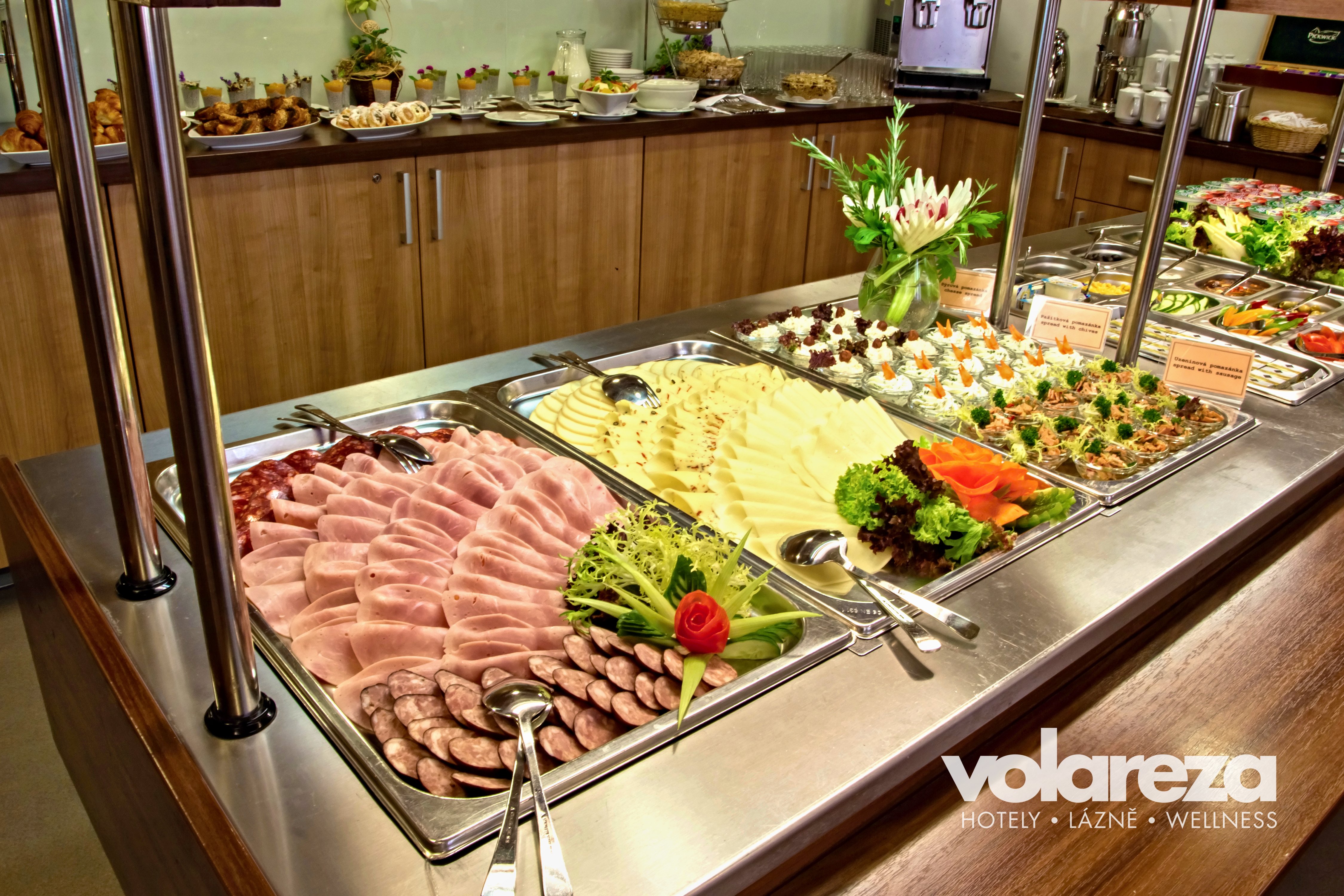 Bohatá bufetová snídaně je součástí ceny ubytování. Snídaně je podávána v Klubové restauraci v 2. patře hotelu, od 7:00 do 10:00.