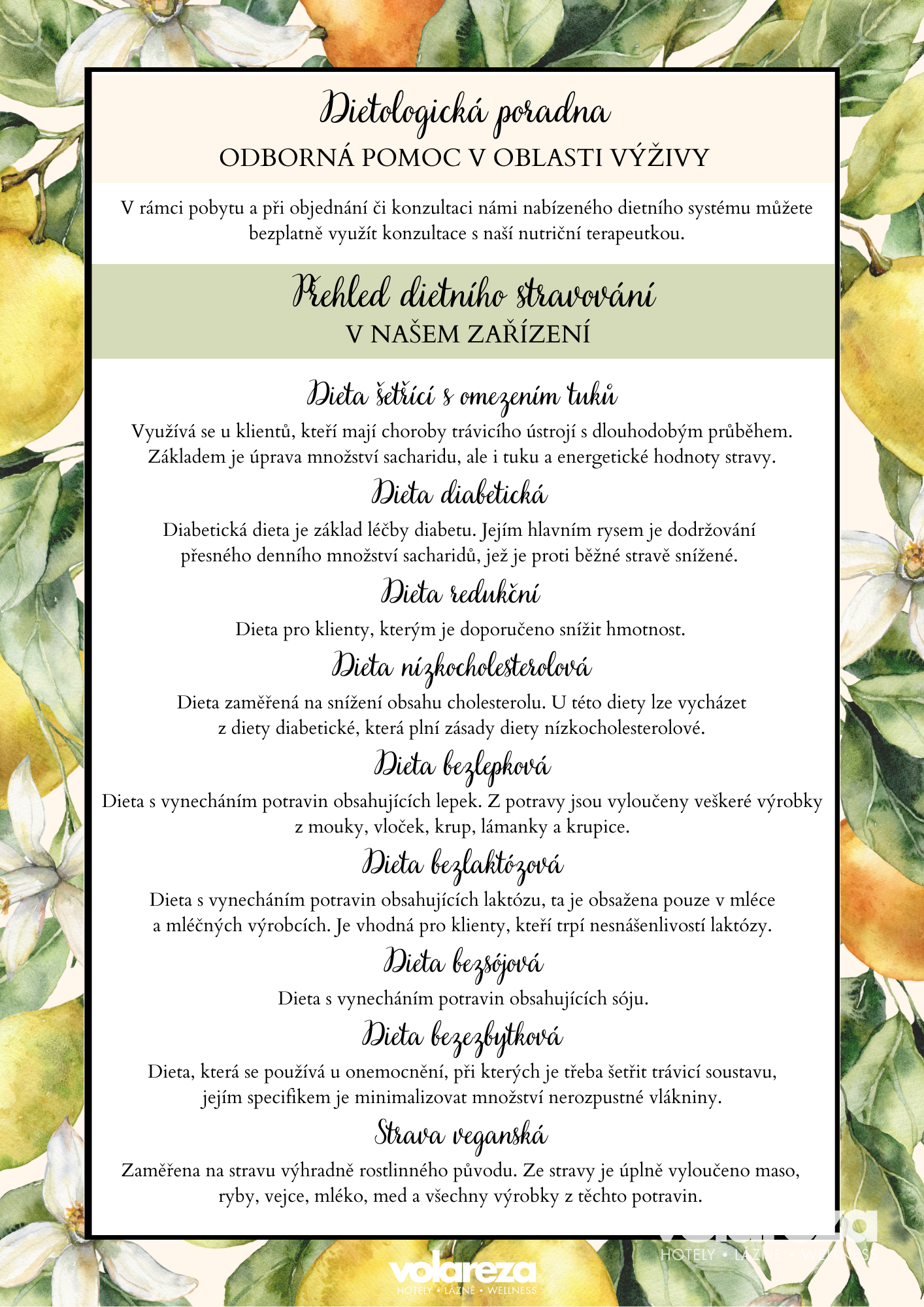 Pro maximální využití nabízeného dietního programu poskytujeme odborné konzultace s nutriční terapeutkou.
