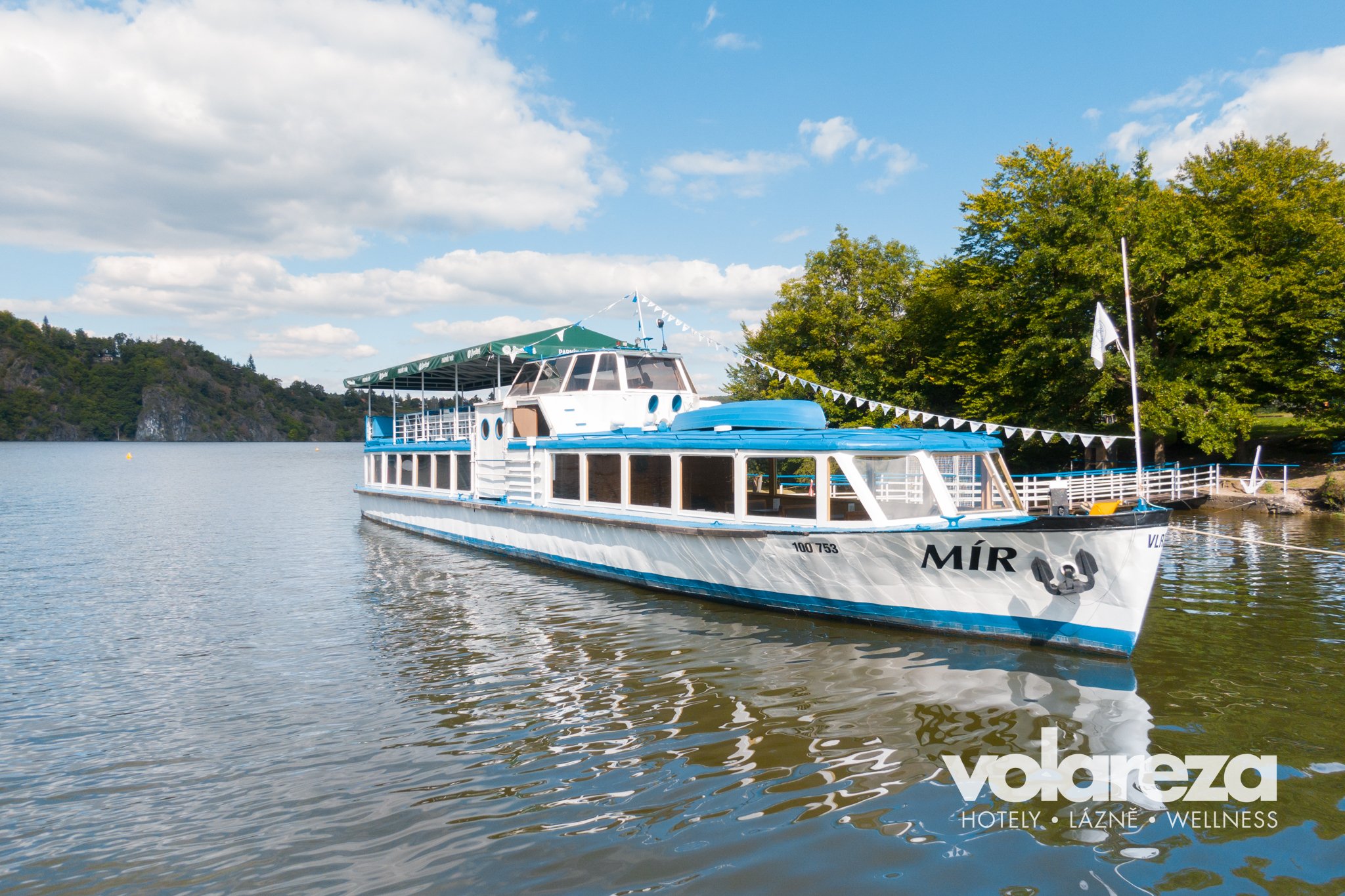 V rámci Vašeho pobytu můžete využít i plavbu motorovou lodí Mír, která vyplouvá každou středu. Při pravidelných okružních plavbách v období květen až říjen, si můžete s celou rodinou vychutnat krásné scénérie Slapské přehrady nebo můžete využít speciální akce pro školy, školky a dětské zájmové spolky. Cenové podmínky naleznete v sekci ceníky.